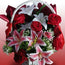 Acest coș floral este o compoziție dramatică și luxoasă, care îmbină eleganța trandafirilor cu splendoarea florilor de accent, creând un impact vizual puternic. Este un aranjament realizat din flori de plastic și catifea, care va dăinui în timp, comunicând admirație profundă și respect.