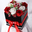 Acest aranjament este o declarație de dragoste elegantă și modernă, realizată într-o cutie pătrată care combină sobrietatea negrului cu intensitatea roșului. Este un cadou de lux, conceput pentru a comunica forța și profunzimea sentimentelor într-un mod sofisticat.