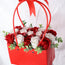 • Cutie Elegantă: Aranjamentul este conținut într-o cutie (Roșie, mată sau la alegere) care imită forma unei genți de cumpărături sau a unei poșete.